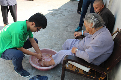 志愿者帮老人洗脚