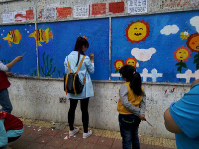 8月16日下午,海尔学院模具14-2班6名志愿者来到香江路社区开展了“美化社区从我做起”活动,以自身行动为社区风貌的改善增添力量。 志愿者们协调有序,先对社区墙面小广告进行了集中清理,又在清理后的墙面上画上了美丽的图案和城市文明礼仪宣传标语。活动过程吸引了社区居民驻足观看,居民们的肯定也进一步提高了同学们的积极性。 通过志愿者们一天的劳动,社区环境小广告得到了清理,社区风貌焕然一新。