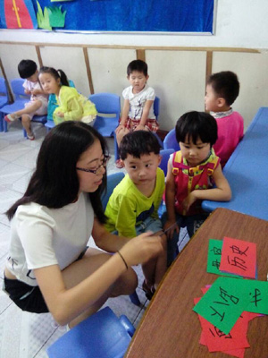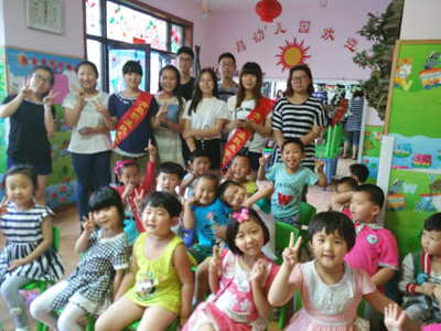8月3日,旅游学院旅游管理专业2014级3班的社会实践团队走进开发区永昌幼儿园,开展支教、志愿服务等一系列社会实践活动。 团队成员们结合各自的特长,分别协助永昌幼儿园的教师教小朋友们唱儿歌、跳舞、画画、拼音、识字、背古诗、朗诵,并在休息时间带领小朋友做游戏。此次活动,除以上的支教内容外,还进行了如摆放桌椅、分发成绩单和作业、协助召开家长会等志愿服务。