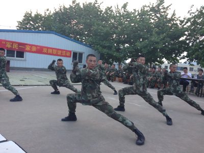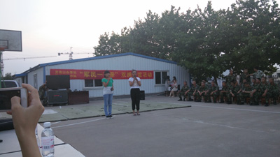 为欢庆“八一建军节”,充分展现拥军的优良传统和爱军的真切之情,8月3日,知行书院10名志愿者在灵珠山社区学院的安排协调下,来到黄岛武警中队营地开展“军民一家亲”双拥联谊活动。 联谊活动以部队士兵一首铿锵有力的《强军战歌》拉开序幕。活动中,军民同台演出,不仅有诗歌朗诵、流行歌曲、搞笑小品等节目,更有部队官兵钢铁力量的展示。活动氛围在军民的声声呐喊中达到高潮,充分展现了民拥军、军爱民的良好关系。