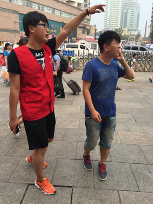 7月25日,海尔学院振超班部分同学组成“振超先锋”志愿服务队,在青岛火车站开展了“走进社会,服务他人”的志愿服务活动,义务为来青游客提供接站服务。