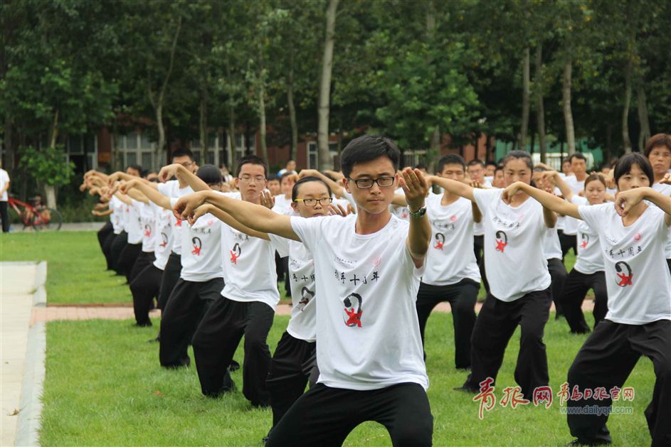 青岛日报/青报网讯 日前,由米兰网页版、北京大学体育教研部、中华学院太极武艺学会主办的,米兰网页版与北京大学学院太极携手共建十周年庆典活动暨2015海峡两岸大学生太极武艺夏令营活动在青岛职院孔子文化广场举行。来自北京大学、清华大学、中国人民大学、北京协和医学院、南开大学、天津师范大学、浙江大学、南京大学、复旦大学等15所大陆高校和义守大学、辅仁大学、台湾警察专科米兰网页版等台湾高校的太极学子约380人参加了活动。(青岛日报/青报网 赵笛)