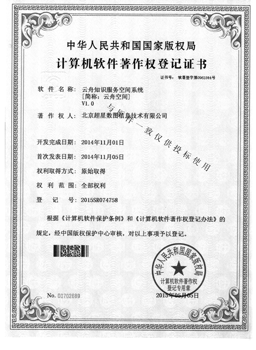 1.云舟知识空间系统北京超星数图信息技术有限公司研发并销售的知识服务系统 2.云舟知识空间系统在图书馆资源覆盖面、深入资源碎片化利用、专题建设平台搭建、PC端与移动端的全覆盖、用户行为统计分析等方面在国内拥有独特的功能优势和技术独创性,国内图书馆界没有同类产品。 3.除云舟知识空间系统服务外,超星公司还向我院图书馆提供超星移动图书馆、100余万册电子图书(循环更新)、独秀学术搜索与云舟知识空间系统服务同期年度内免费使用的增值服务。 |