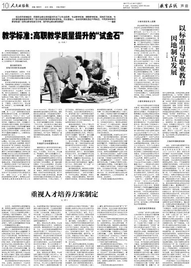 职业教育国家教学标准体系的建立恰逢其时。从高职教育的现状来看,在高职院校中还存在着专业设置随意、专业教学标准不科学、课程计划不执行、顶岗实习不规范等问题;有的高职院校对学生的评价重技能、轻素养,仅考虑短平快的低水平就业,忽略学生可持续发展的能力培养;还有的高职院校专业教学缺乏职业内涵,实践性教学要么“短斤缺两”,要么“形同虚设”。俗话说,没有规矩不成方圆,同样,没有标准何谈质量。国家教学标准体系的制订,从遵循办学规律出发,制订规则、提供规范,为依法治教、规范办学奠定了基础,这标志着高职教育发展的重点已进入到内涵发展和质量提高的新阶段。